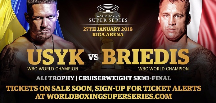 Полуфинальный поединок Всемирной суперсерии бокса между чемпионом мира по версии WBO Александром Усиком (13-0-0, 11 КО) и обладателем пояса WBC Майрисом Бриедисом (24-0-0, 18 КО) состоится 27 января в столице Латвии Риге. Об этом сообщила пресс-служба WBSS.