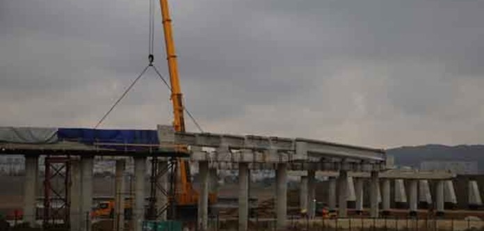 На фотографиях видно процесс соединения пролетов эстакады моста и работы по расширению дороги в районе населенного пункта Верхнее Солнечное.