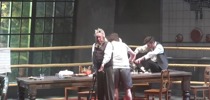 Ефремов опоздал к началу выступления, вышел на сцену пьяным, мямлил свою роль невнятно и забывал слова. Зрители сделали ему замечание, на что пьяница ответил благим матом.