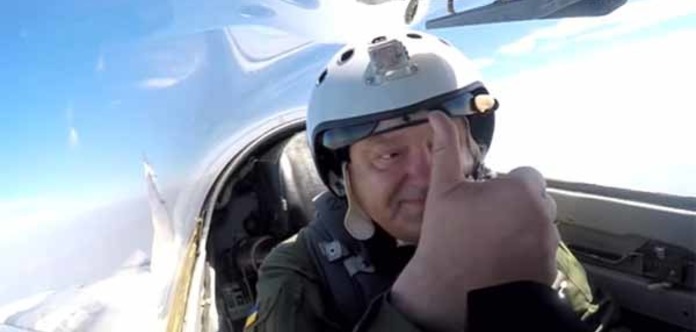 Президент України Петро Порошенко в суботу, 5 серпня, на місці другого пілота здійснив переліт на бойовому винищувачі МіГ-29. На винищувачі Петро Порошенко прибув до військової частини у Вінницькій області, де привітати бойових льотчиків з професійним святом - Днем Повітряних Сил України.